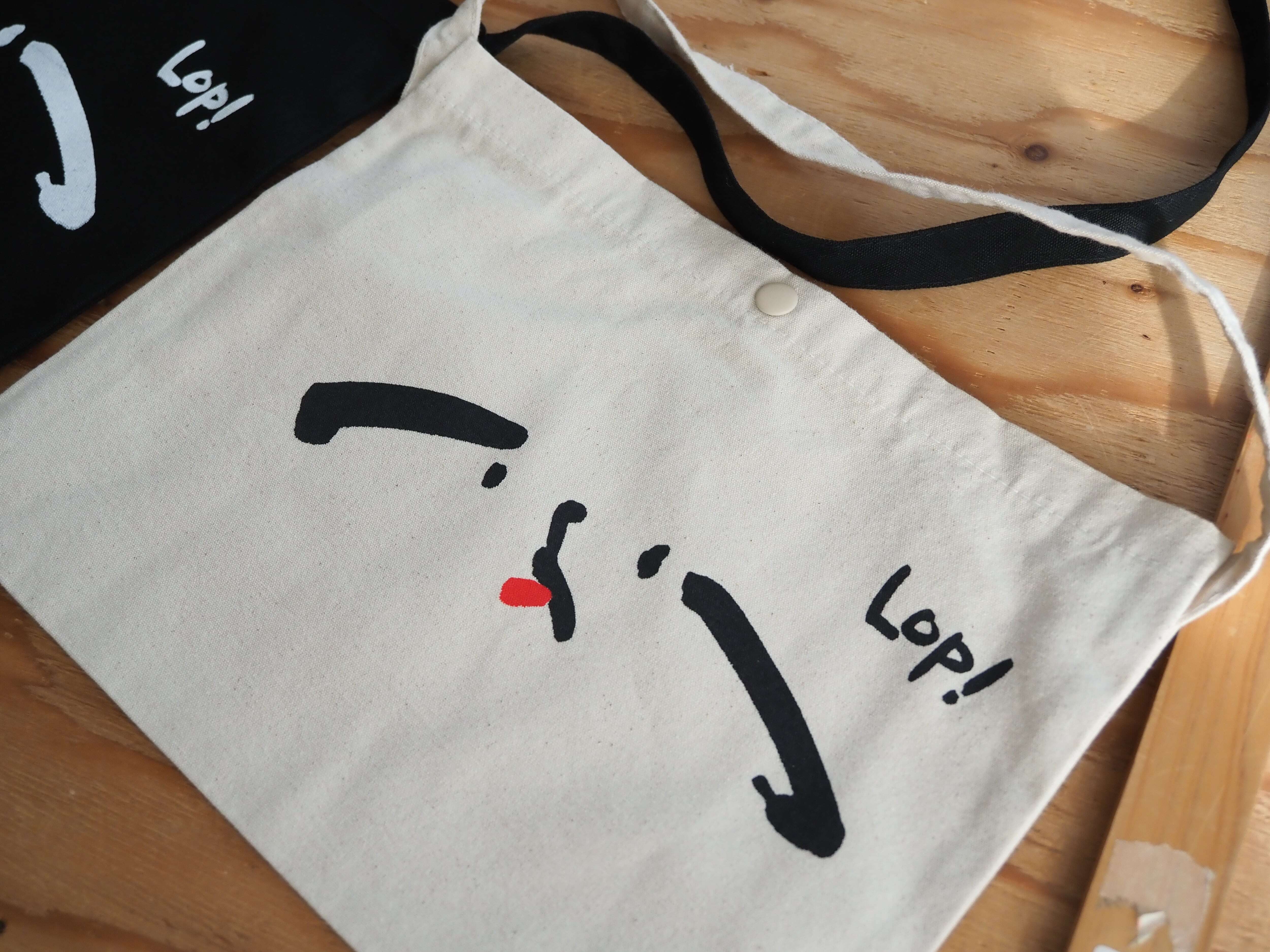 舌をぺろんと出したロップイヤーラビットのイラストがかわいいサコッシュです!